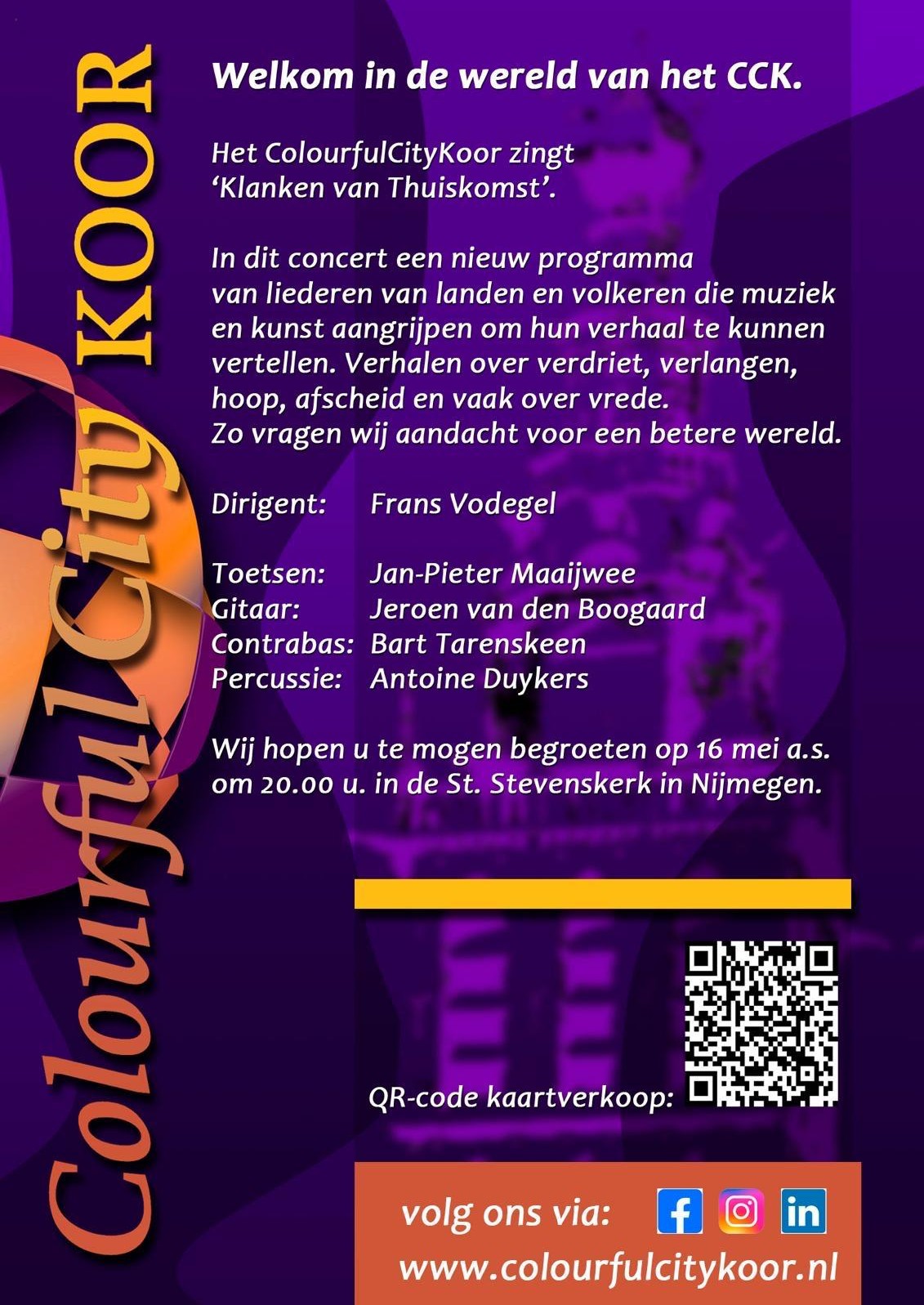 Het Colourful City koor zingt o.l.v Frans Vodegel een nieuw programma met liederen van landen en volkeren die muziek en kunst aangrijpen om hun verhaal te kunnen vertellen.
